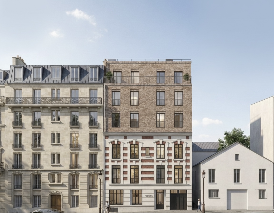 Une rénovation architecturale exemplaire d'un immeuble parisien de 1923, transformant un bâtiment historique en ensemble résidentiel neuf tout en préservant son caractère original.